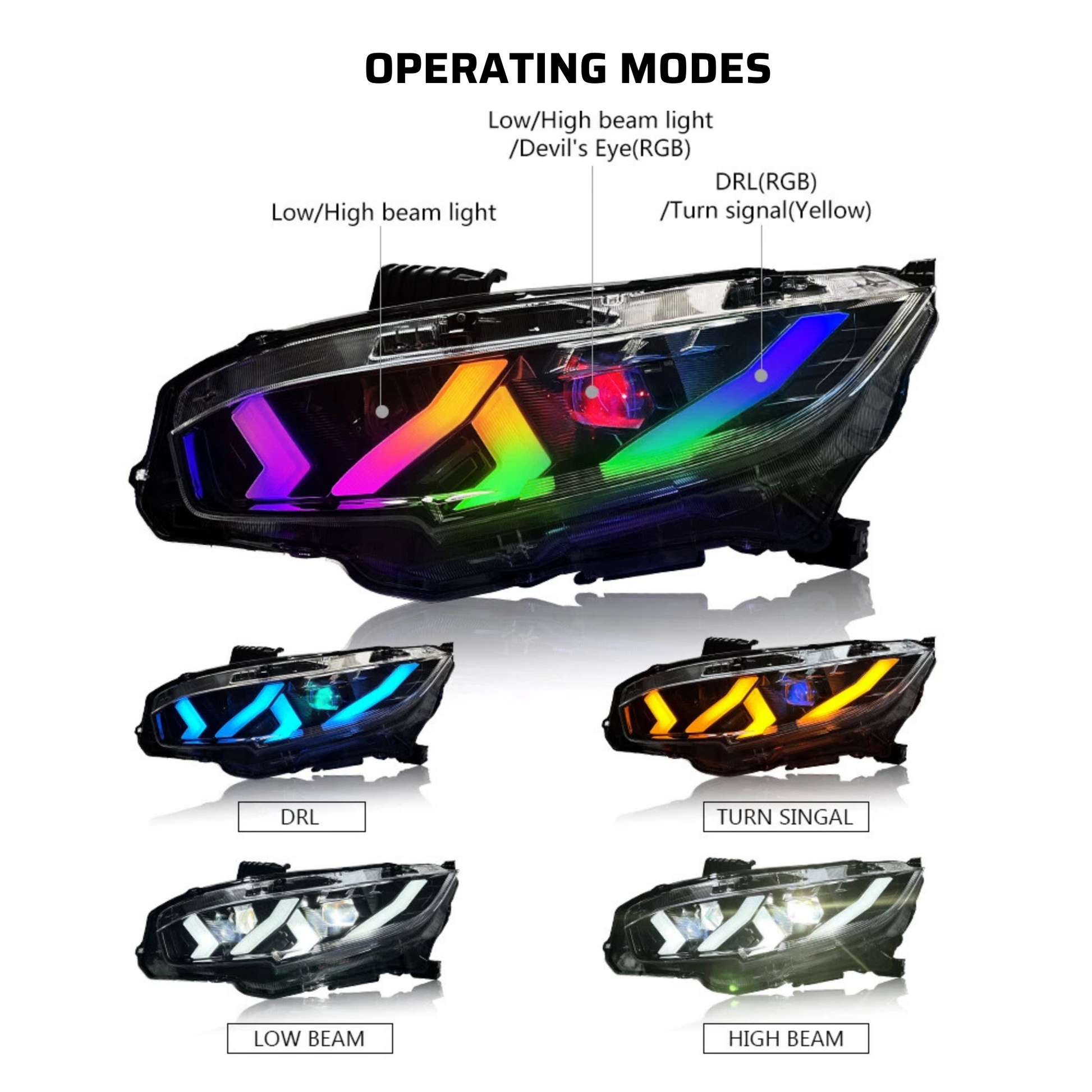 RBG Lambo Inspired Sequential Headlights - 10th Gen Civic